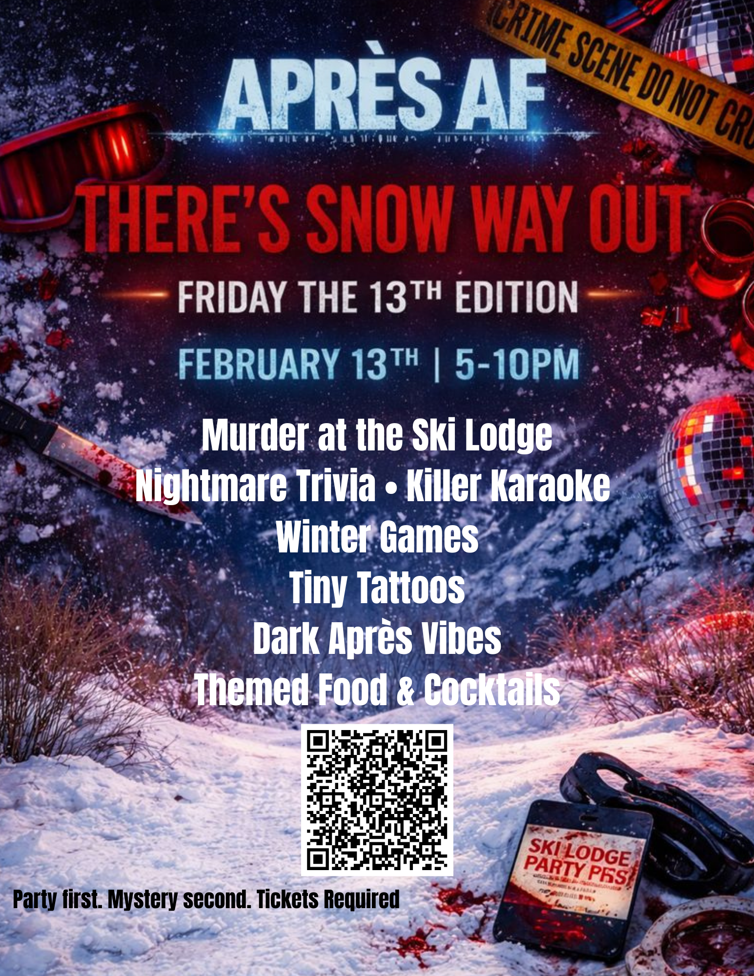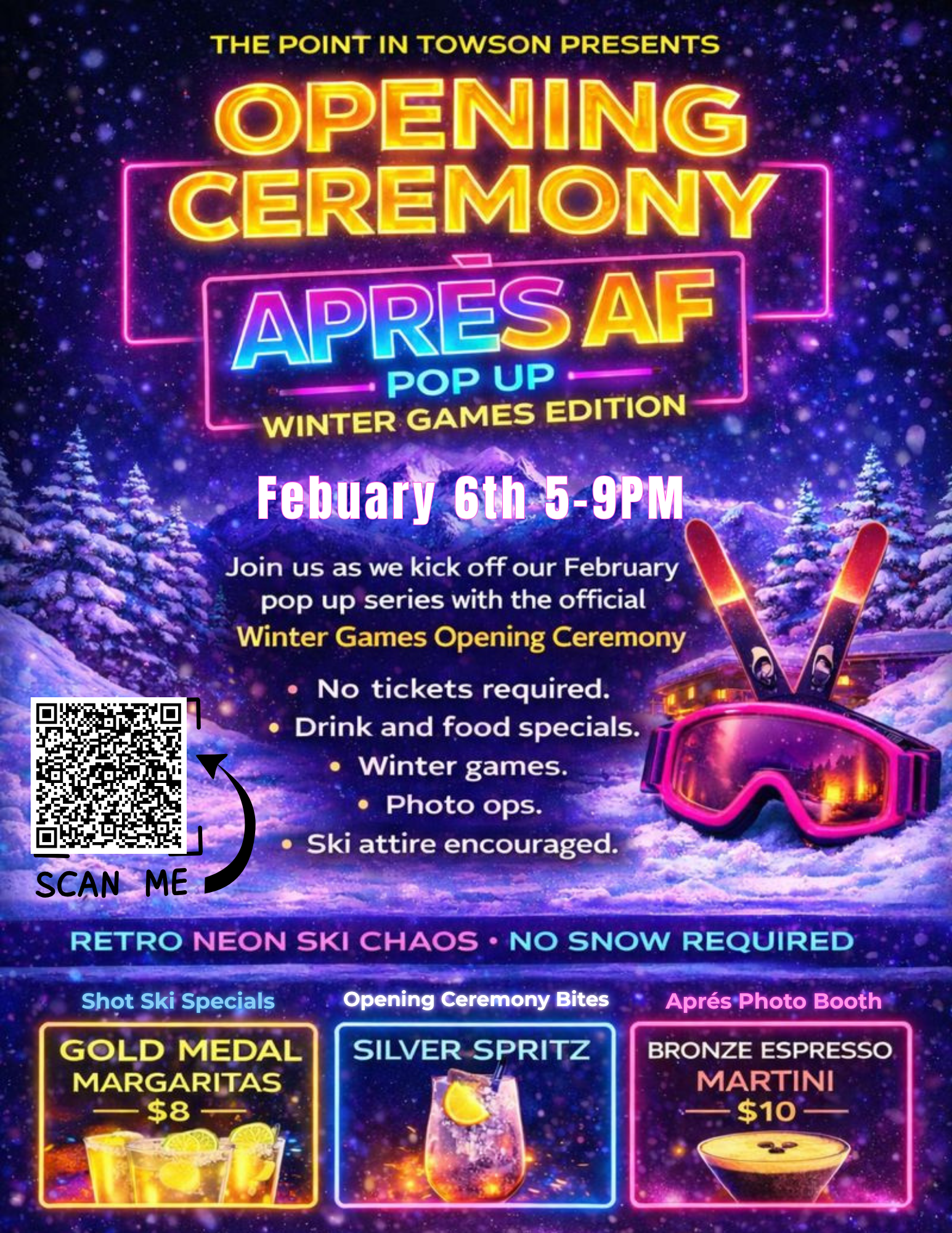 Aprés AF: Winter Games Edition pop up experience featuring themed brunches, happy hour, drag brunch, and themed decor
